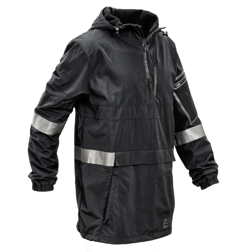 This limited edition ELEVEN BLACK Anorak will protect you from the elements. It comes with a 3M carbon reflective tape on the arms and back. Keep the water out with center front waterproof zipper, storm pocket flap, and waterproof pocket zippers. Internal microfleece liner for added warmth. High Density ELEVEN BLACK Logo on right shoulder and EB logo on left hem.